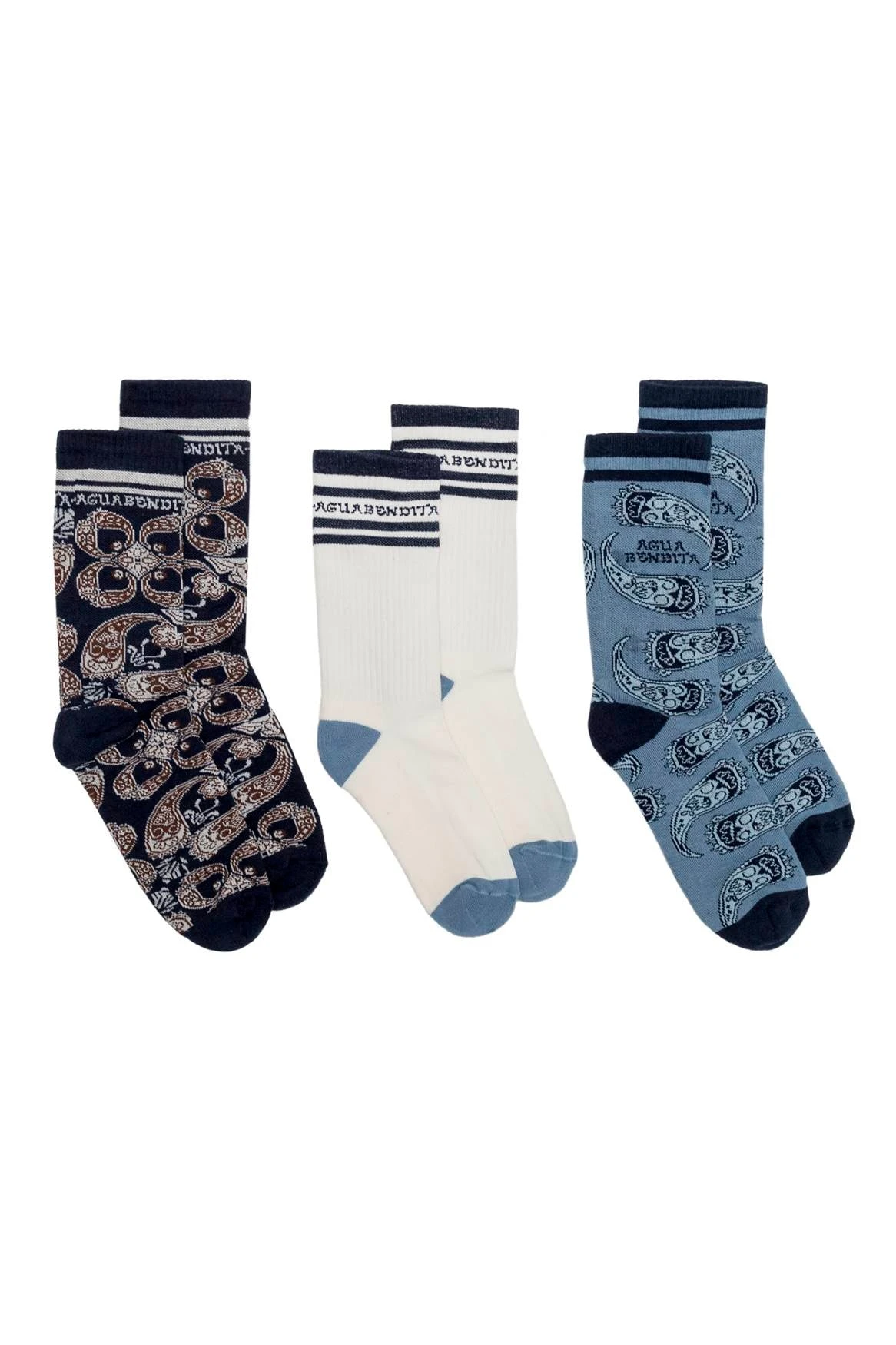 Pack of three knitted socks. They have a classic-sporty look with unique designs, perfect for giving as a gift or matching with all your looks.
