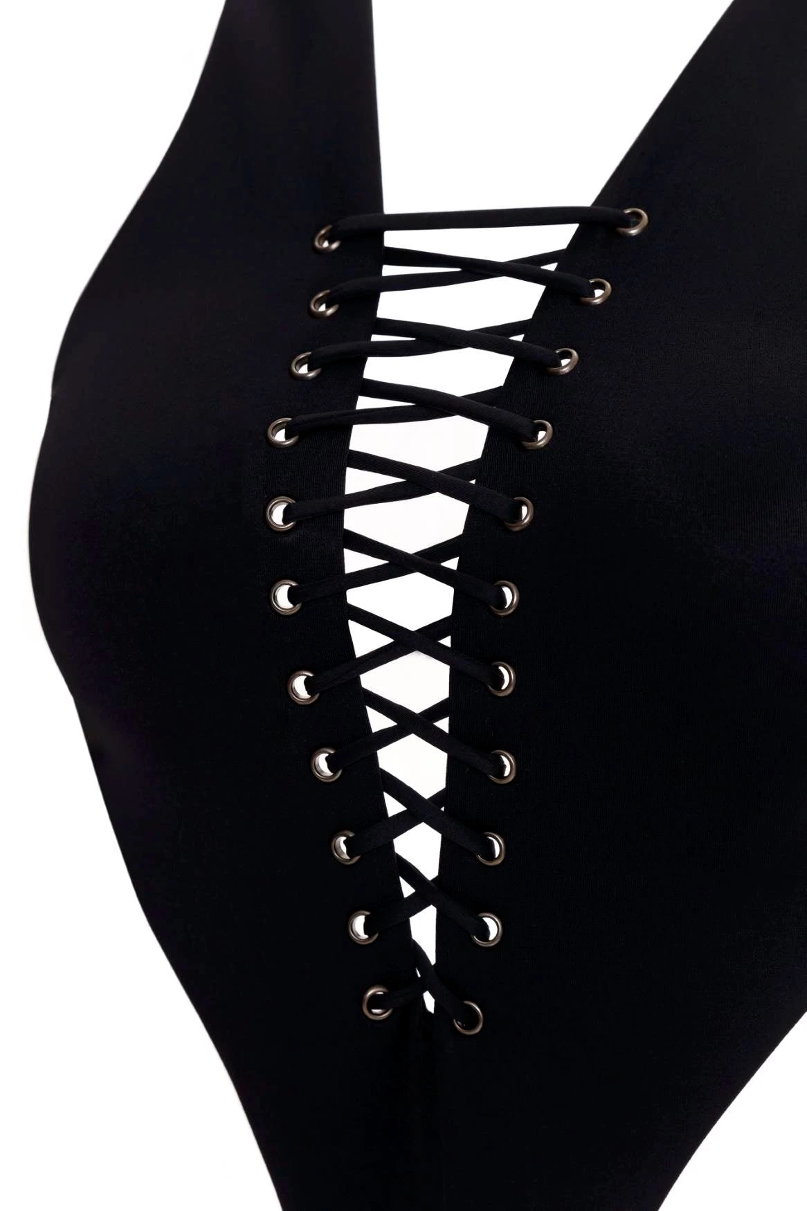 Our solid black one-piece swimsuit is designed to hug the body perfectly. Featuring sophisticated cut-out details that add a modern edge, this piece combines fashion with function. The high-neck halter silhouette and UPF 50+ fabric provide coverage and sun protection while the sleek design maintains a timeless appeal.