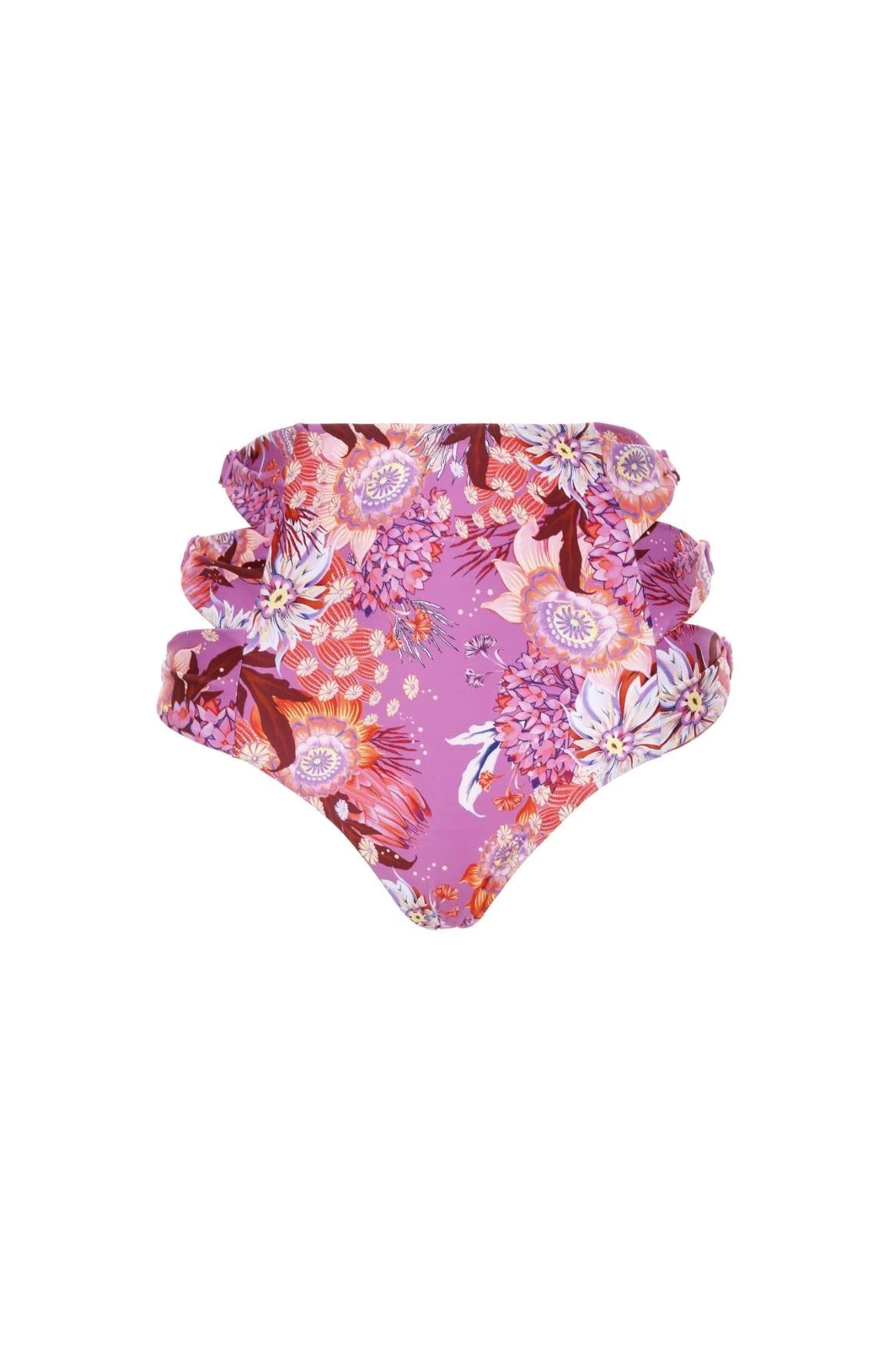 Our Aliz cut-out Bikini Bottom is embellished with outer world-inspired print and bioluminiscent plants. This bikini bottom has twisted cut-outs on the sides and a high waist for a flattering look.