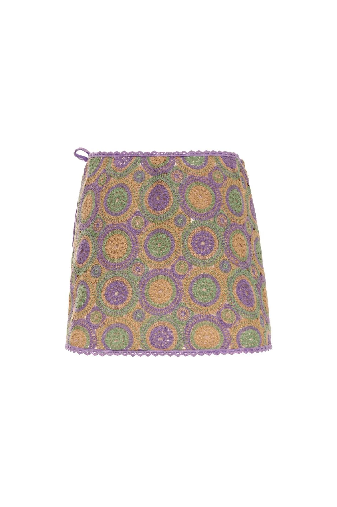 Our Danina crochet skirt is short and adjustable to your size, perfect to wear on or off the beach. Use it as a set with our Vicky croptop.