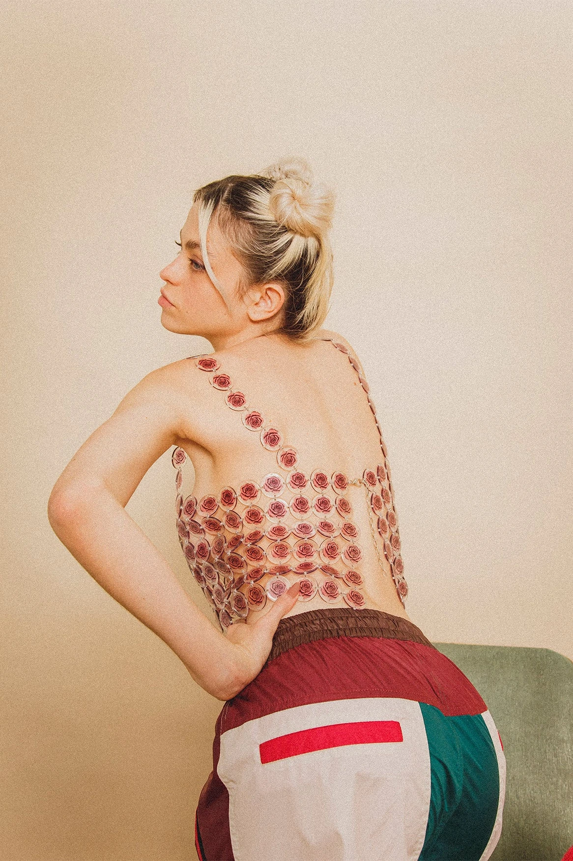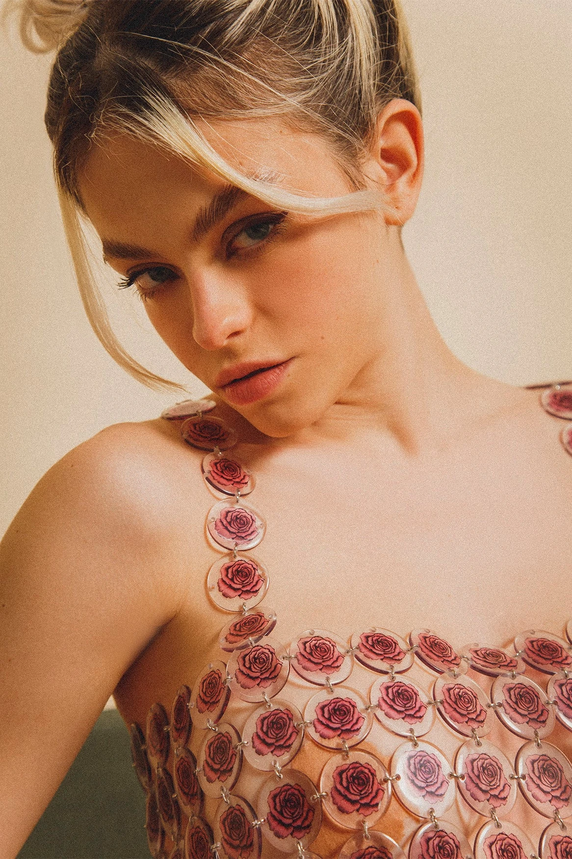 New Silhouette! Crop top handmade by our #ABhearts with rose sequins. A Crop Top that is for sure going to attract all the looks.