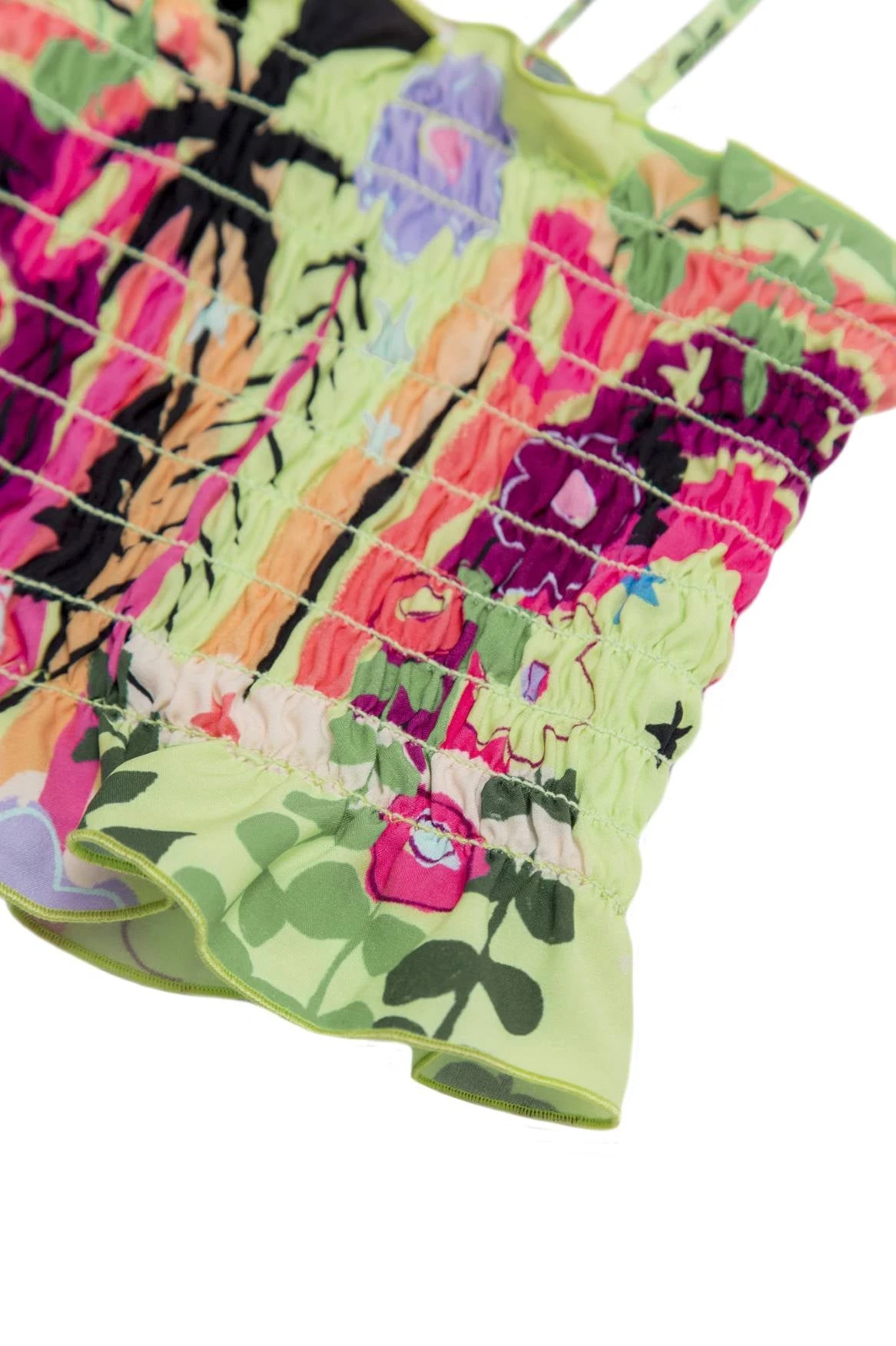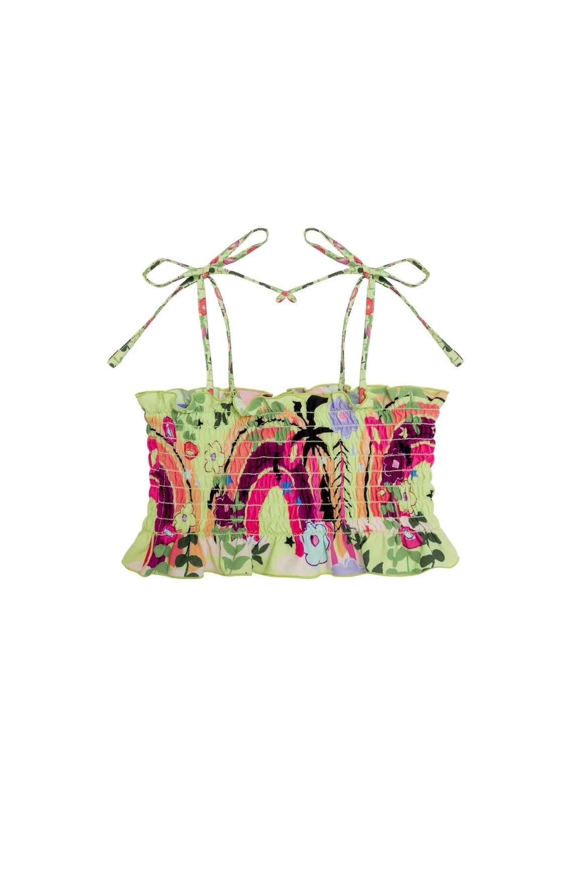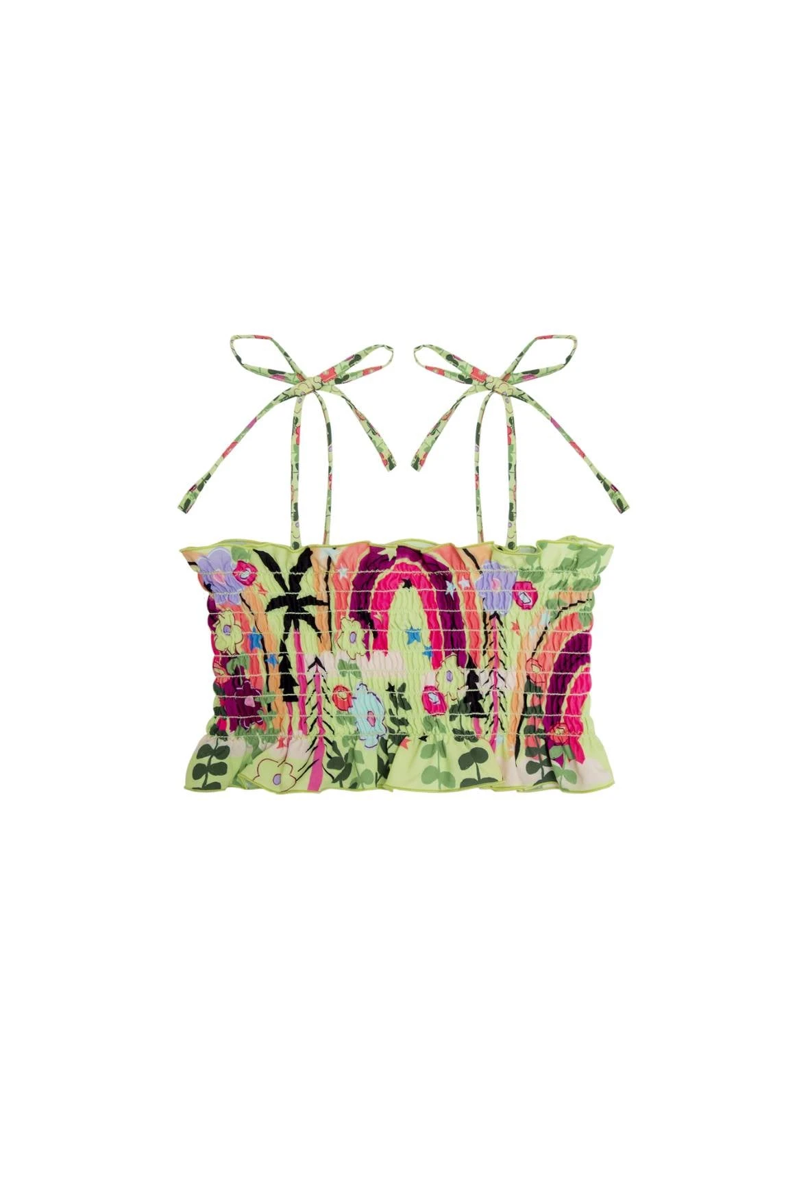 Add a touch of playfulness with the Gisele Kids Top, featuring ruffle details and an artisan-designed playful print. The crop top’s adjustable shoulder ties and smocking offer a secure and flattering fit, allowing your little one to enjoy endless beach or poolside fun in style.