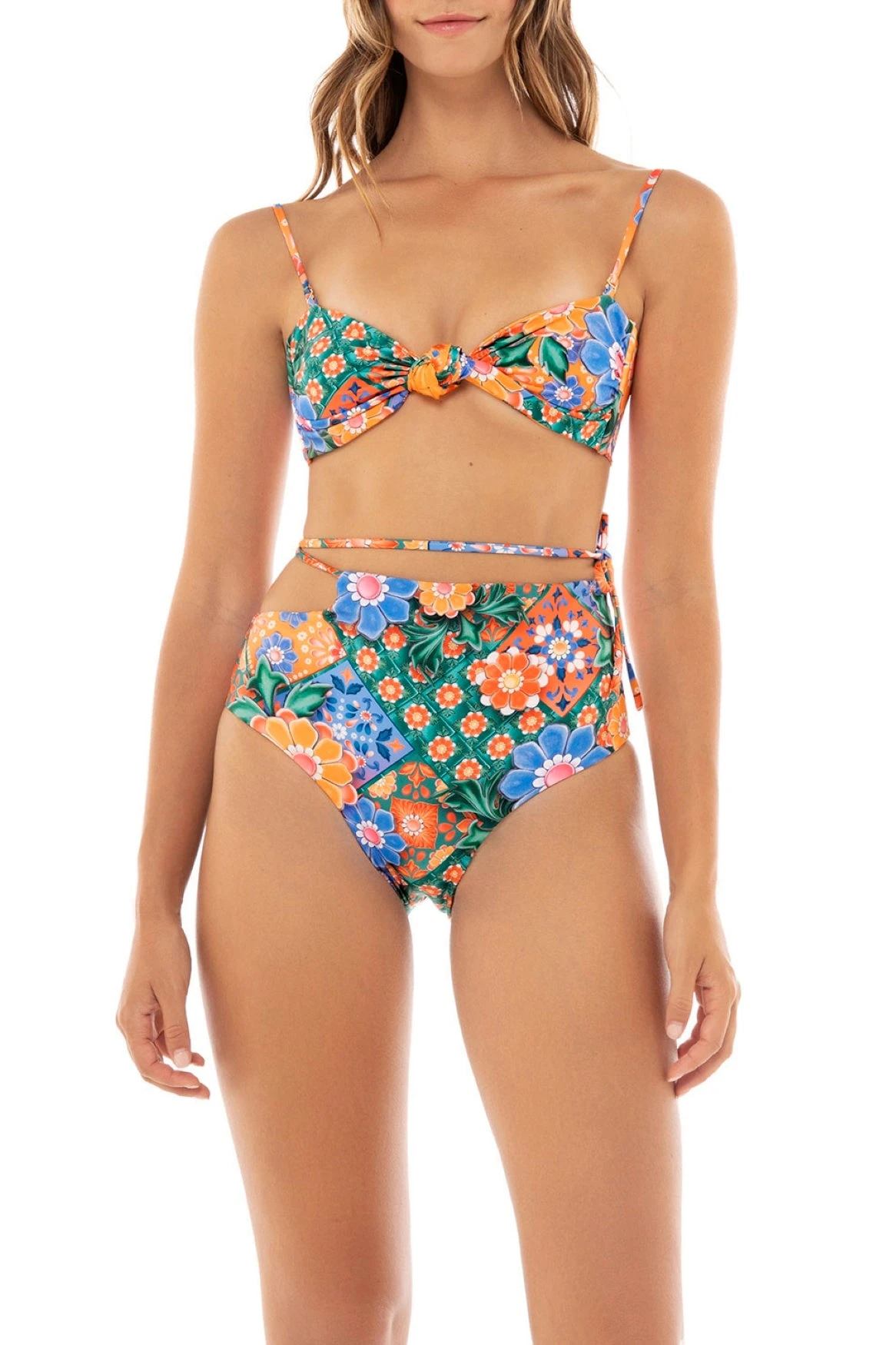 Elevate your swimwear collection with the Glenda Bikini Bottom. This high-waist asymmetrical piece highlights our colorful hand-illustrated print and features an adjustable tie on one side for a personalized fit. Smooth, soft finishing edges ensure a flattering fit, and the Latin coverage adds an elegant touch. Enjoy the beauty and comfort of these stunning bottoms.
