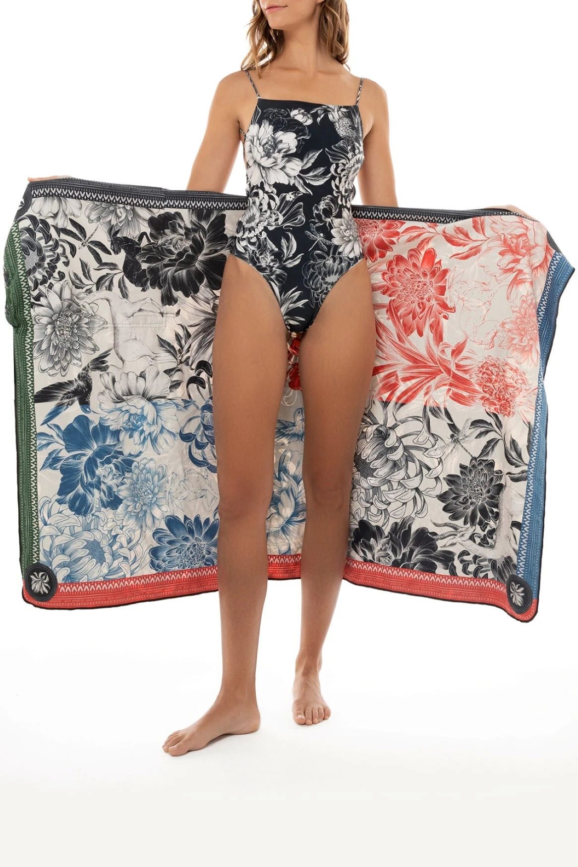 The Ima Towel is a beach essential reimagined. It boasts handmade details and a striking placement print, with a reversible feature that offers two stylish looks. This towel folds into a charming bag, making it as functional as it is fashionable. Accented with handmade details, it’s a summer staple for sunbathing, picnics, or simply making a statement by the shore.