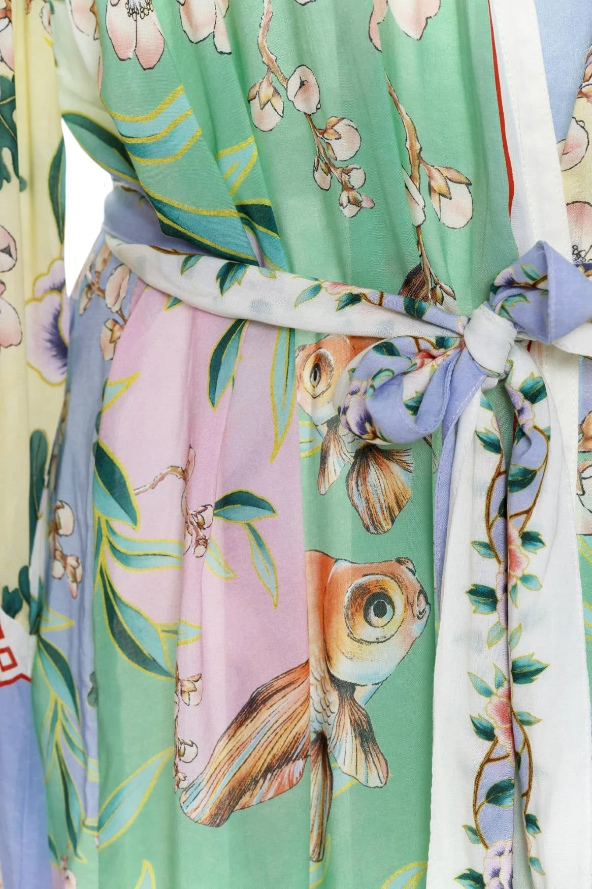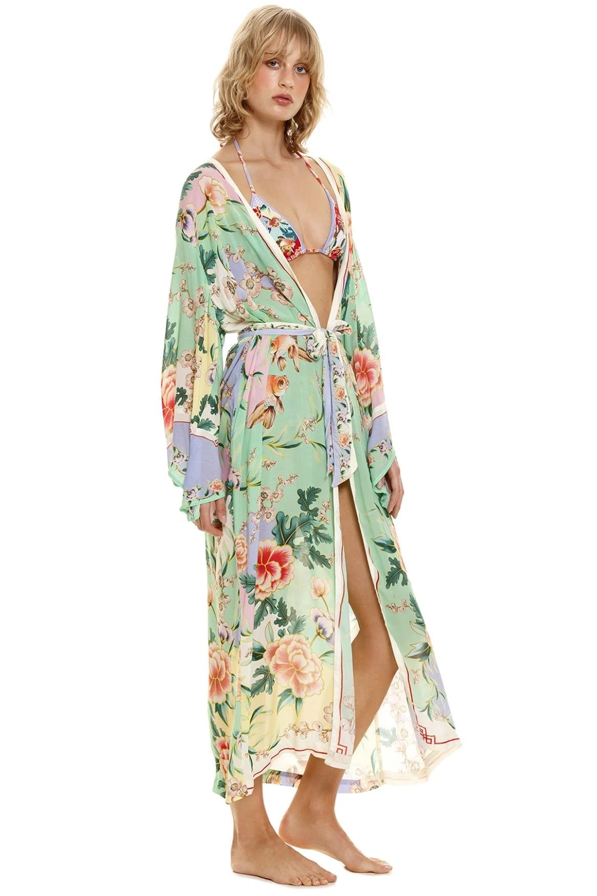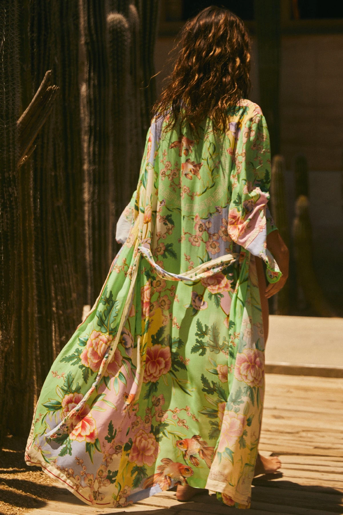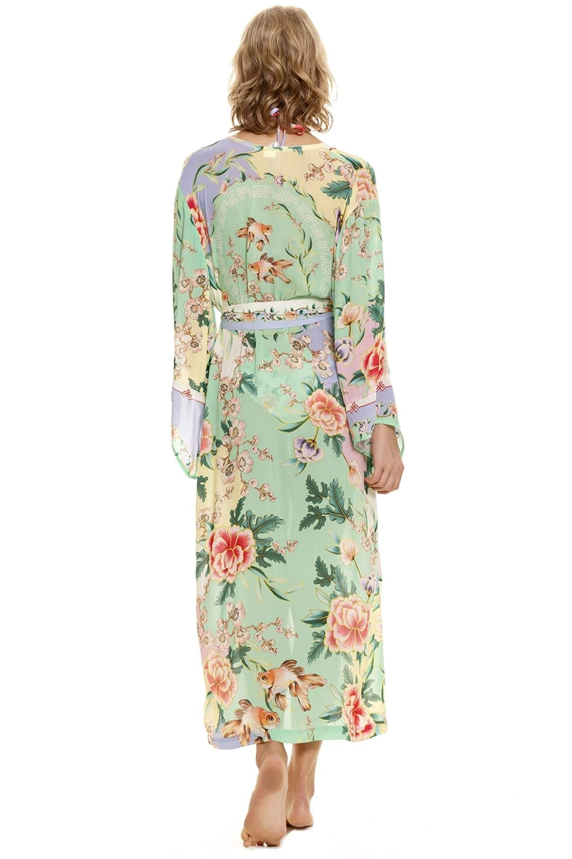 Discover the magical Kimi Tunic, a Japanese-inspired masterpiece adorned with a printed assortment of artisan-designed delicate, colorful flowers. The beautiful emblem on the back enhances the tunic’s exclusivity. Whether you’re at the beach or strolling through town, this tunic adds a touch of charm and elegance to your look.