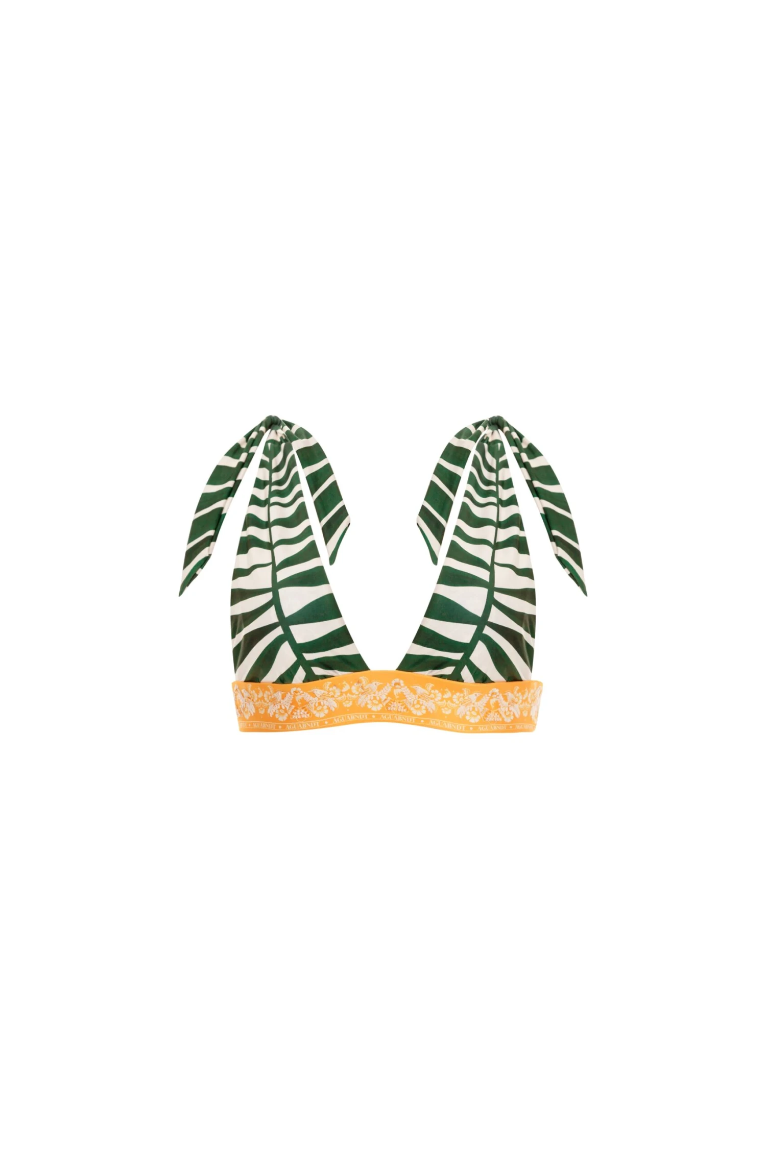 The Laurie Bikini Top has a halter style and is embroidered by our #ABhearts over our nature-inspired print that adds to the handmade look. The Laure Top is available in plus sizes and features adjustable straps at the shoulders for the perfect fit & support, and it’s made with recycled polyester. This top was embroidered for 9 hours by Sandra Grandos’ team of artisans, creating a complete piece of art.
