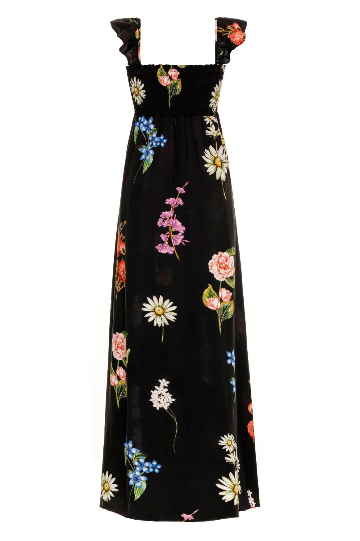 The ruched details on the front and back of our Leandra dress ensure a perfect and comfortable fit. Its delicate ruffled sleeves and side slit are the extra touches to stand out on any occasion.
