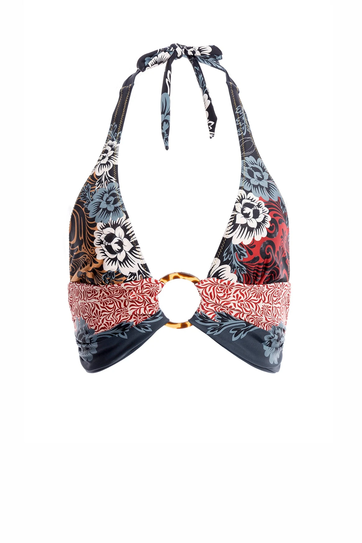 The Loto triangle bikini top has a center ring detail, the perfect finishing touch to each piece. This top has excellent coverage with a tie at the neck and back. This piece is ideal for all bodies with a thick underwire and fabric for comfort and fit. Available in large plus-size sizes. Agua Bendita creates a drop inspired by ethereal upholstery, golden threads, patterns, flowers, and earth tones. Pieces full of art with a Maxi Boho style. Canvas, Dark Sea, Scarlet, Toffee, Steel, and Black. Fera represents the risk-taking, bold and maximalist explorer as the heart of AB. This garment is perfect for all bodies.