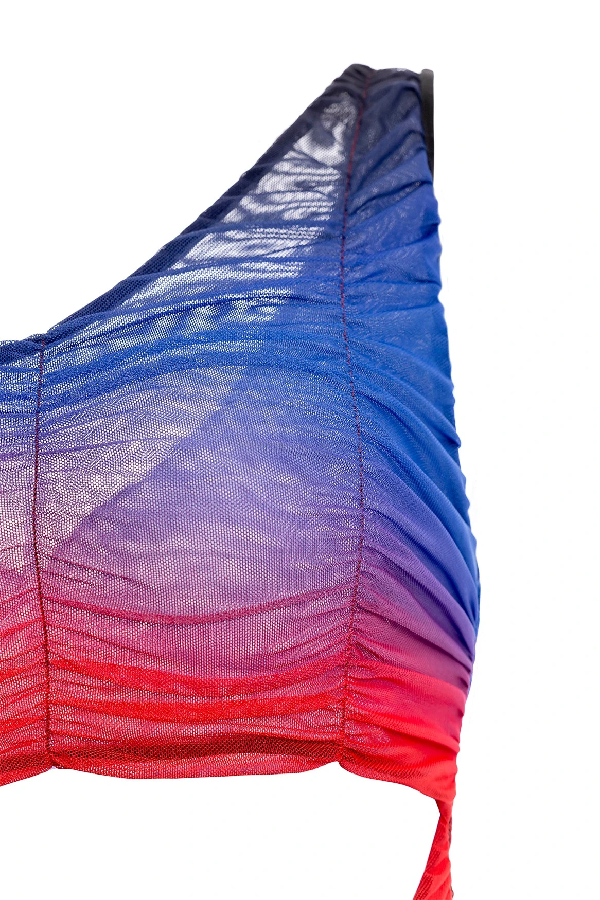 The Maat mini dress is a new silhouette and a key look. With a localized print, this piece has an asymmetric print and silhouette ideal for a day-to-night look. With a localized print, Agua Bendita creates a collection inspired by the night, music, party, and the color of the sea that mixes with the colors of the sunset and the night. The shape of the waves and the sky. The taste of a cocktail, sexy and risky. A disruptive visual proposal based on irregular chromatic effects. Vini is energetic and always on the go, not afraid to be the center of attention.