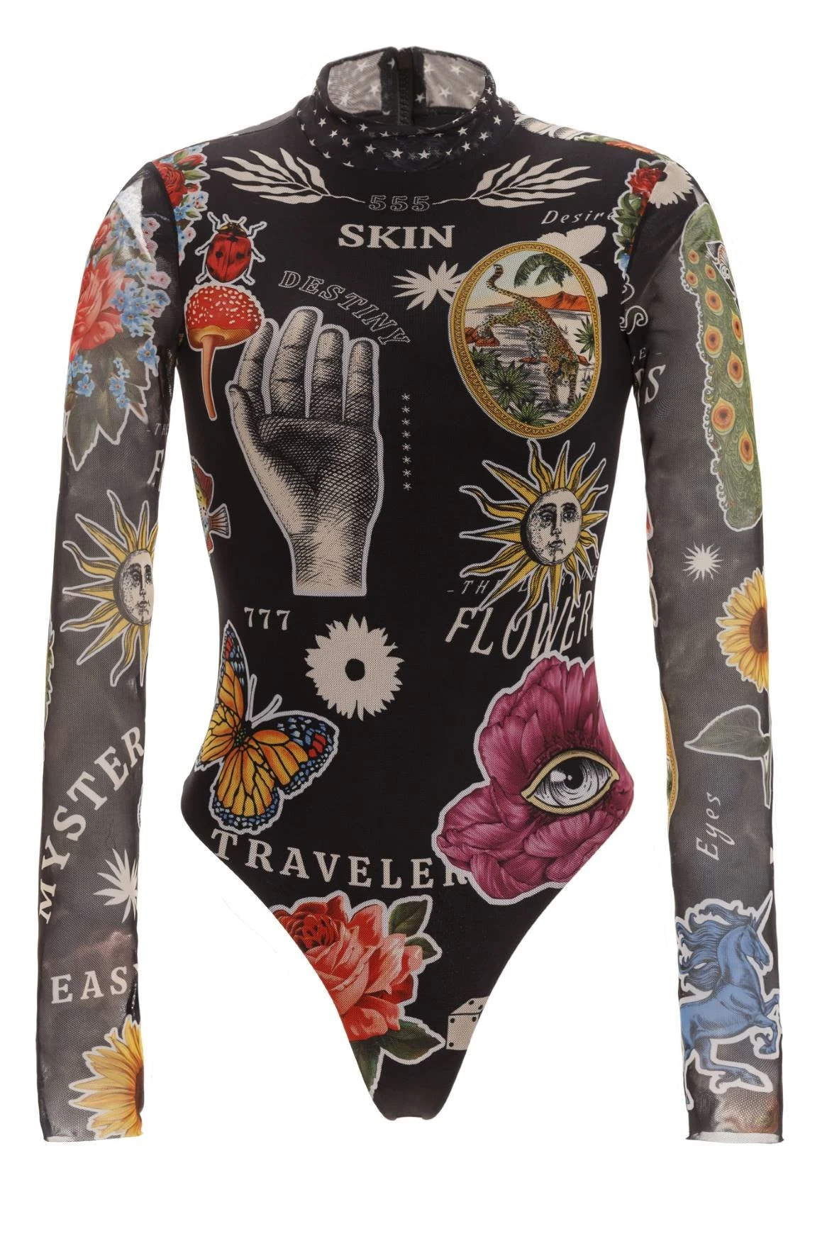 Our Mei One Piece features a high-neck bodysuit adorned with artisan-drawn tarot symbols for an authentic handcrafted touch. Whether at the beach or elevating your style with jeans, this piece is versatile and chic. The back zipper closure ensures a secure and seamless fit, making it an exceptional addition to your swimwear collection.