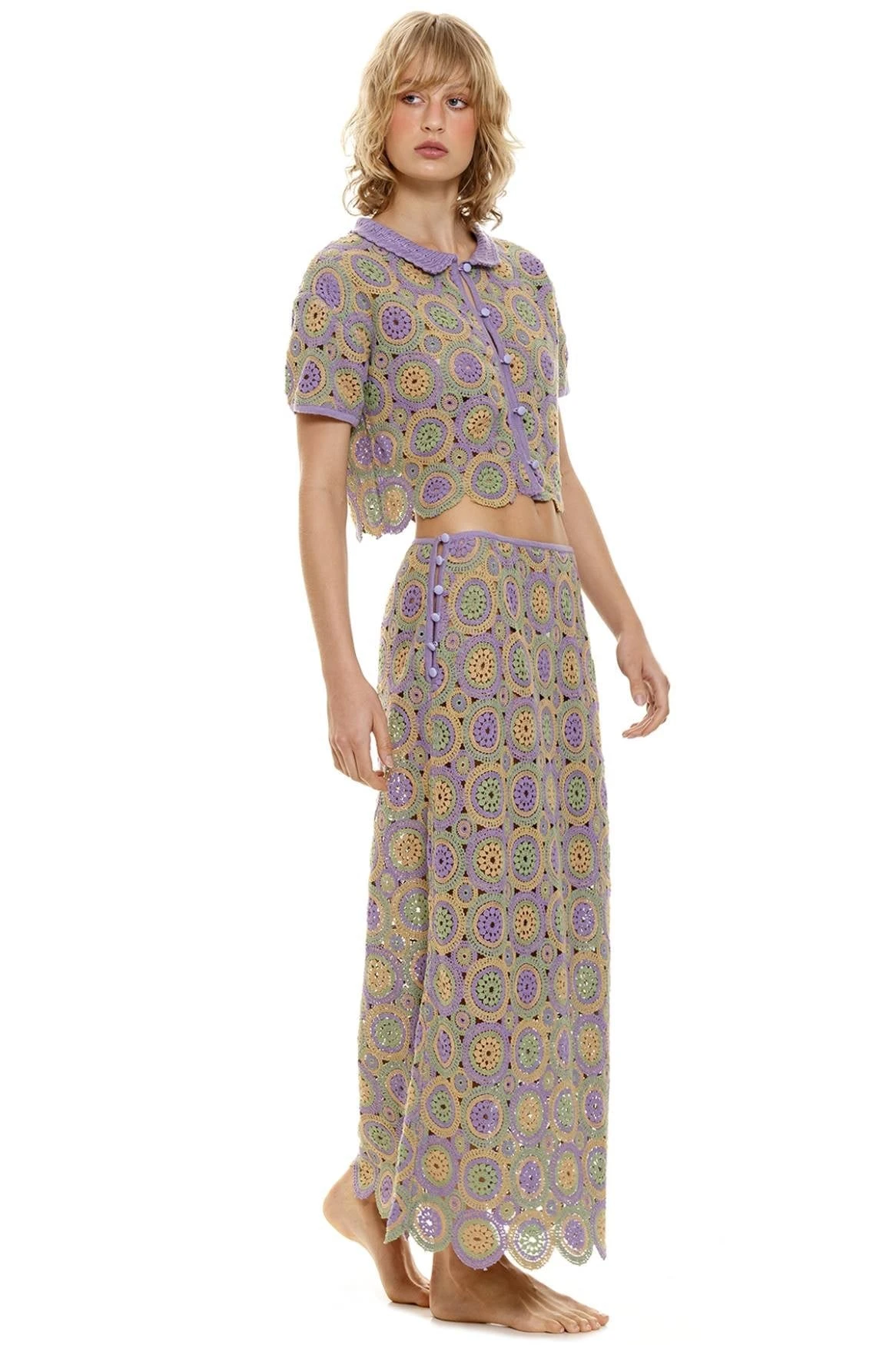 Discover the Nui Skirt, an easy-breezy essential featured in an open crochet look. It’s the perfect complement to the Lillian Shirt or any top, making it great for a summer beachy look. Elevate your beach ensemble with a skirt that adds a touch of elegance and artistry.