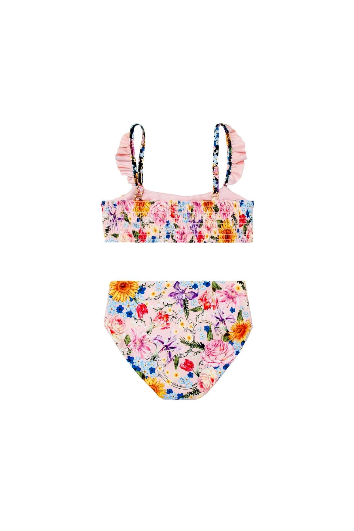 This two-piece bikini features a sporty top with back smocking for adjustability and a high waist bottom—the perfect swimsuit for all-day fun at the pool or beach.
