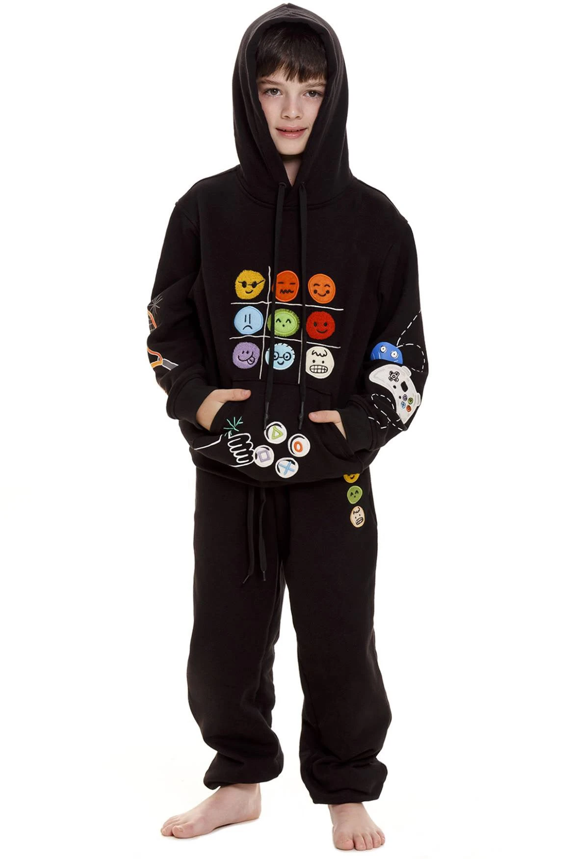 Our Greg Kids Shorts are decorated with whimsical motifs and highlighted with a playful element on the back patch pocket. The elastic waistband, paired with a textured black and white tie, provides comfort and functionality, making it a perfect choice for active beach days.