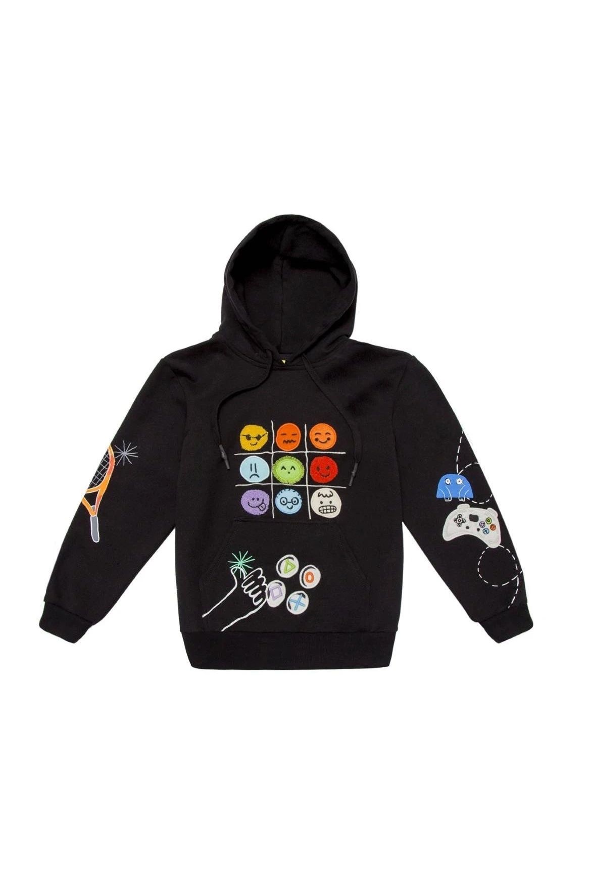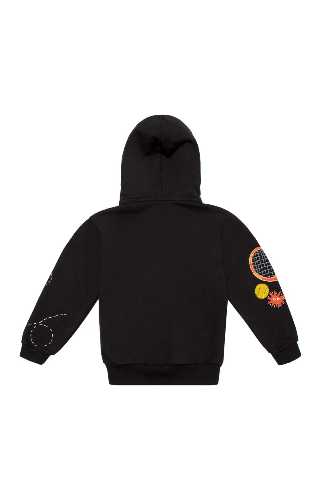 Our oversized, long-sleeved hoodie is adorned with print brand motifs. The hoodie front ties provide adjustability and comfort, while the front pocket adds functionality wherever your child goes, making it a delightful addition to their wardrobe.
